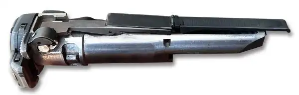 Собранный в рукоятке ударно-спусковой механизм имеет рычаг взвода, флажковый неавтоматический предохранитель и спусковой рычаг. Для прицеливания служит прорезь на ограничителе ножа и металлическая мушка на головке рукоятки. Хотя дальность прицельной стрельбы установлена в 25 м, эффективная стрельба возможна на заметно меньшие дальности.