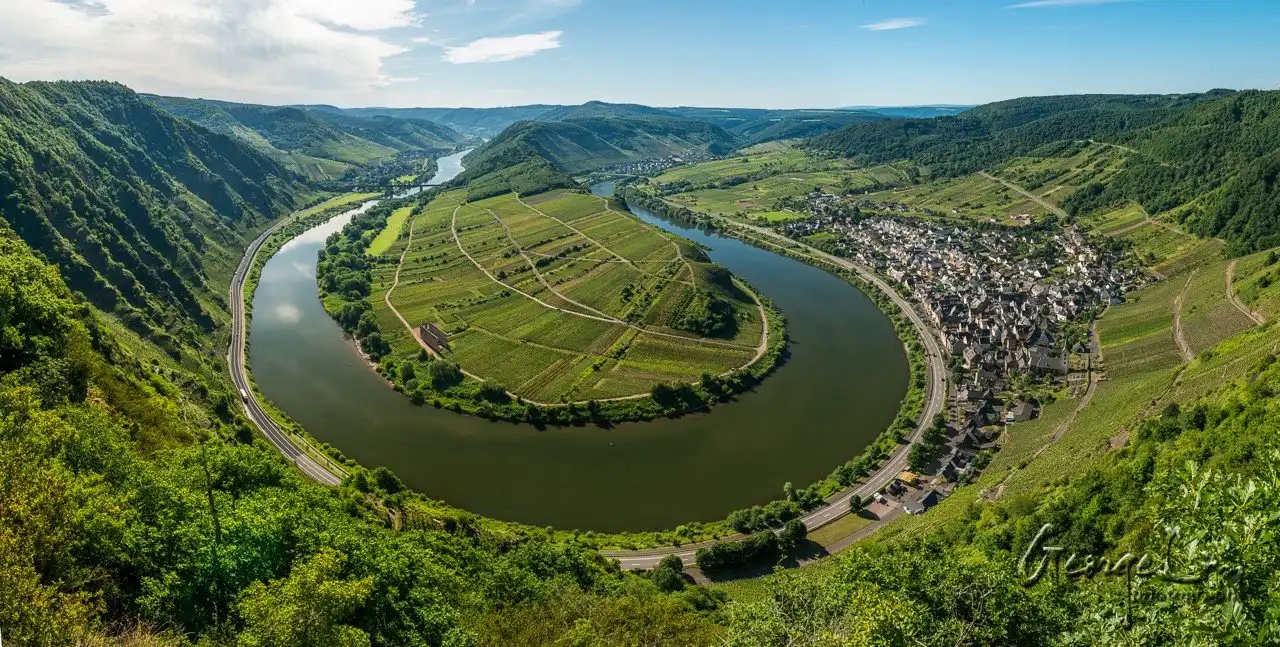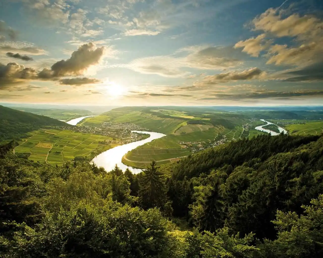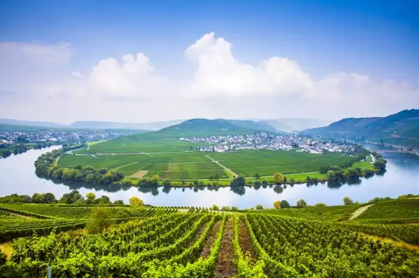 Мозель, вторая по своему значению река Германии является колыбелью знаменитых на весь мир мозельских вин. Долина Мозеля — это без преувеличений самый живописный уголок Германии. Мозель, с его круто спускающимися к воде виноградниками, входит в число самый выразительных винодельческих ландшафтов мира. Своей славой мозельские вина обязаны Рислингу. В теплых странах рано созревающий Рислинг дает скучноватые вина. Долина Мозеля в серединной его части благодаря очень извилистому руслу реки и высоким берегам создает идеальные условия для долгого, медленного созревания Рислинга, и в результате из этого винограда и делают местные виноделы знаменитые мозельские вина.