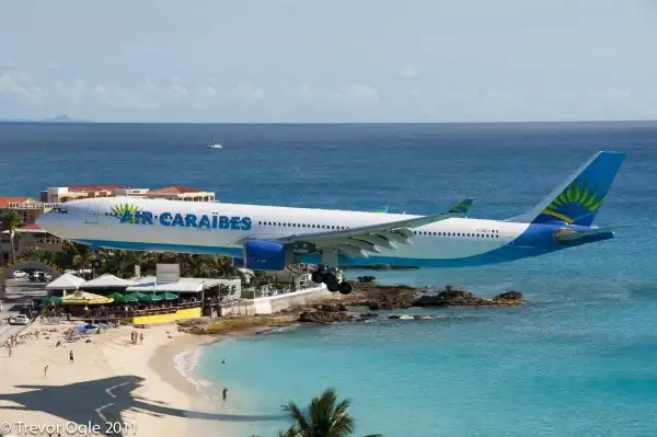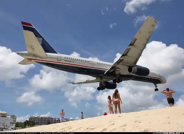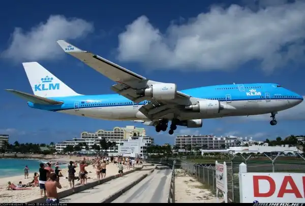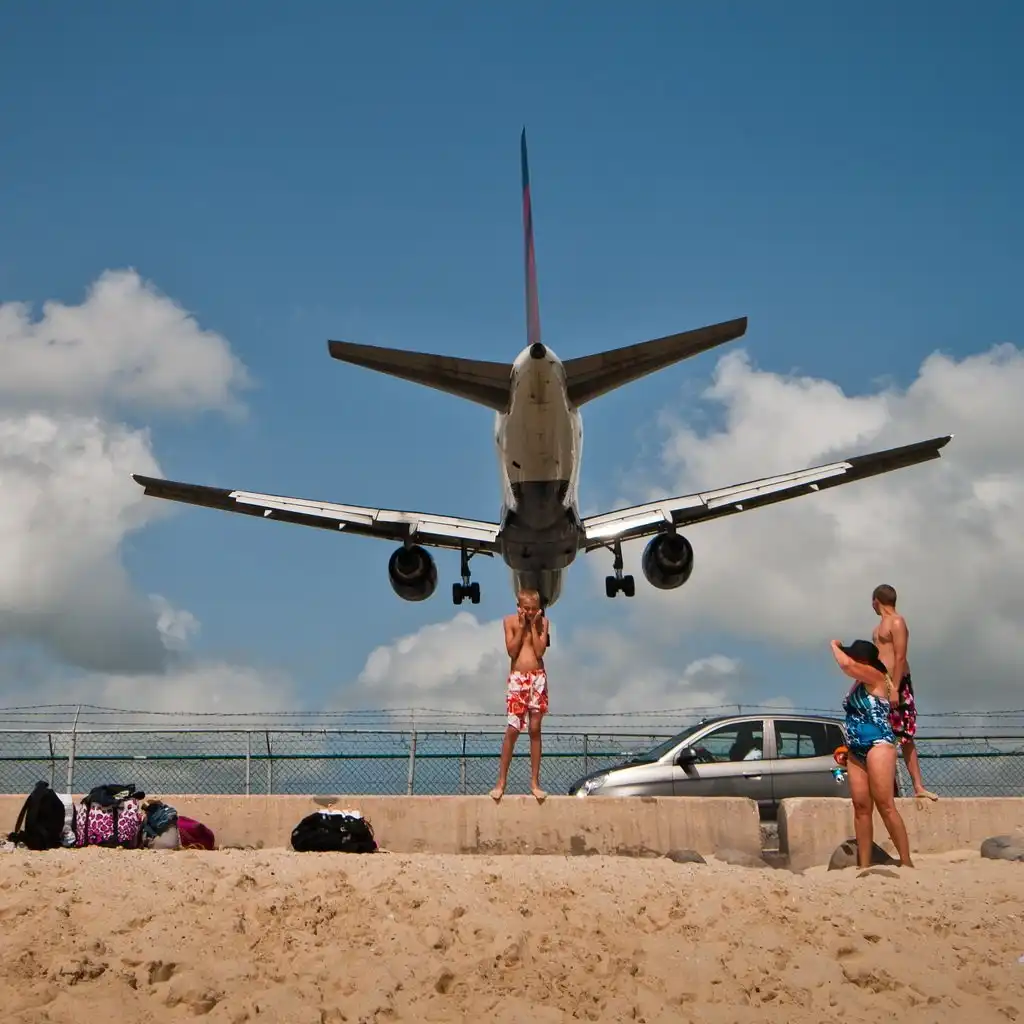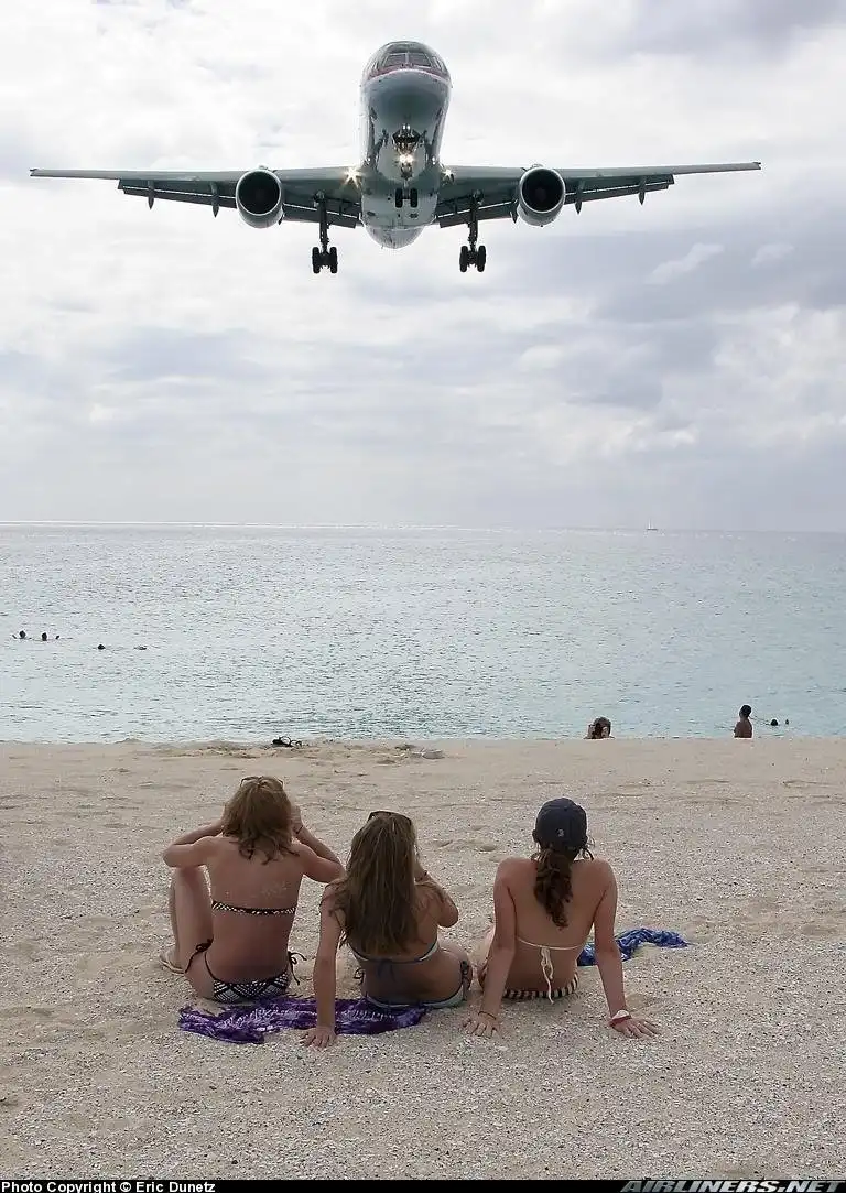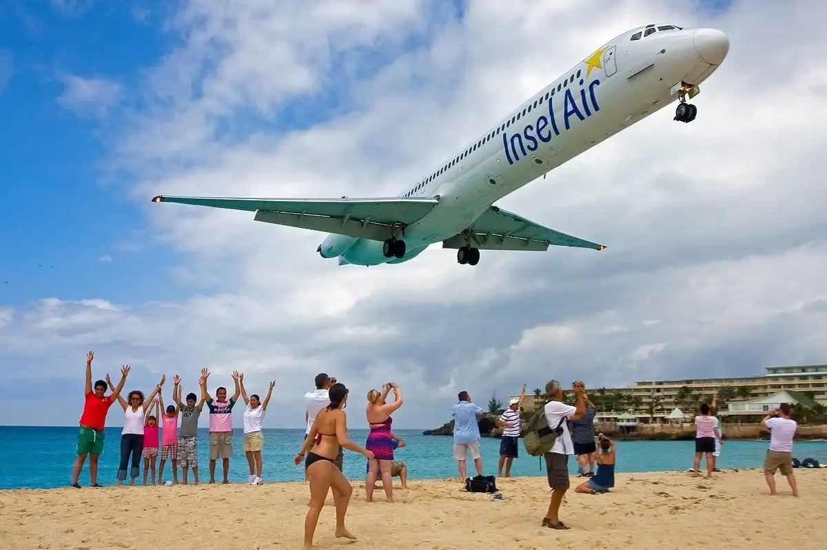 С островом Сент Мартин, расположенном в Карибском море, связанно не мало интересных фактов. Мало того, что он является самым маленьким обитаемым островом в мире, так еще и управляется двумя независимыми правительствами, Франции и Нидерландов, причем одновременно! Однако главное чем славится St. Maarten, что при заходе на посадку, самолеты чуть ли не касаются пляжа и отдыхающих на нем туристов.
