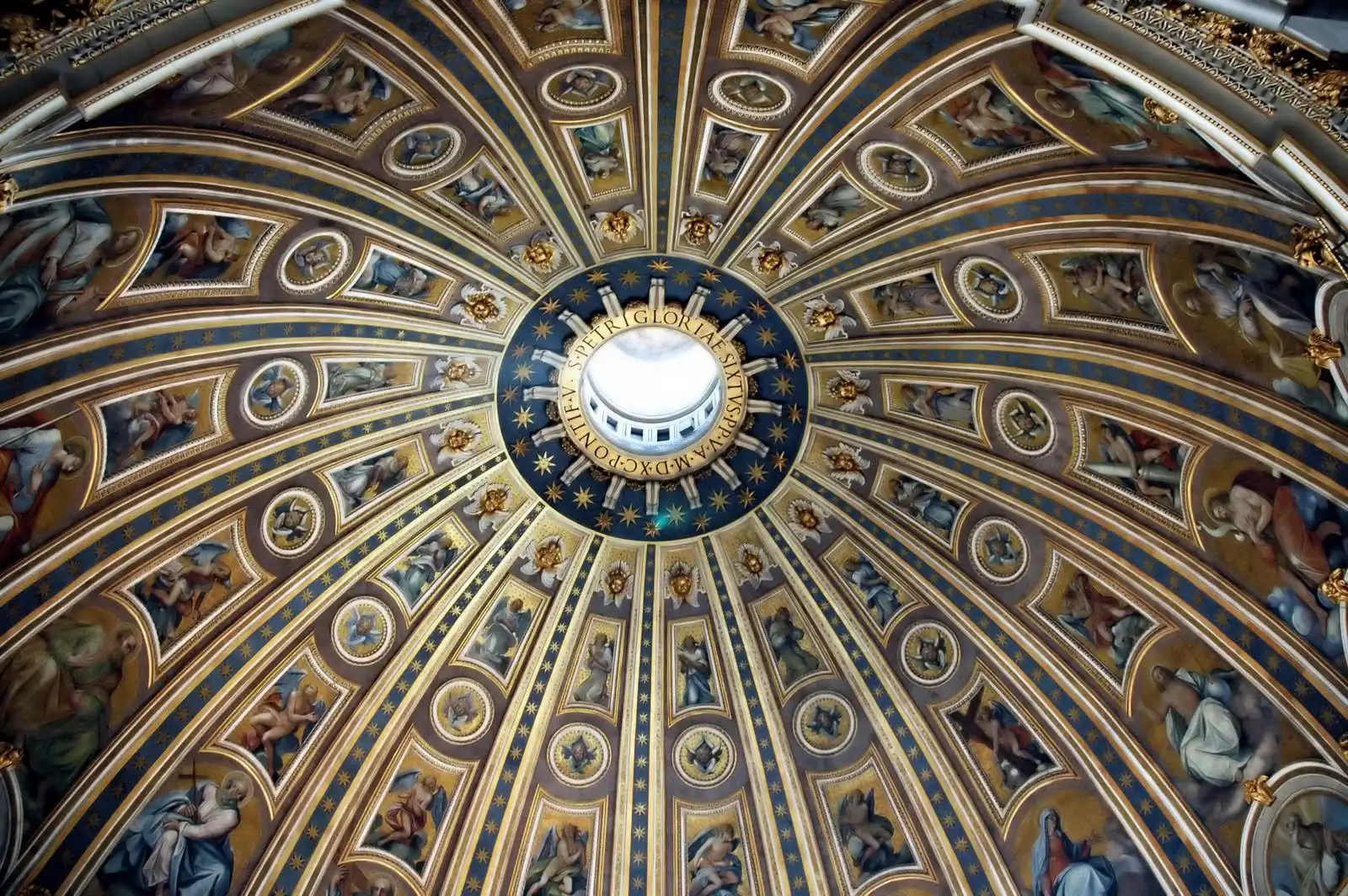 Хотя Микеланджело и спроектировал купол, но увидеть собор завершенным ему не суждено было. Он успел возвести лишь барабан для купола. Круглый свод был закончен лишь в 1590. В венчающем купол так называемом глазе помещена надпись, прославляющая папу Сикста V, в последний год понтификата которого было завершено строительство собора св. Петра. Высота купола до верхушки креста 136,57 м, его внутренний диаметр – 42,56 м.