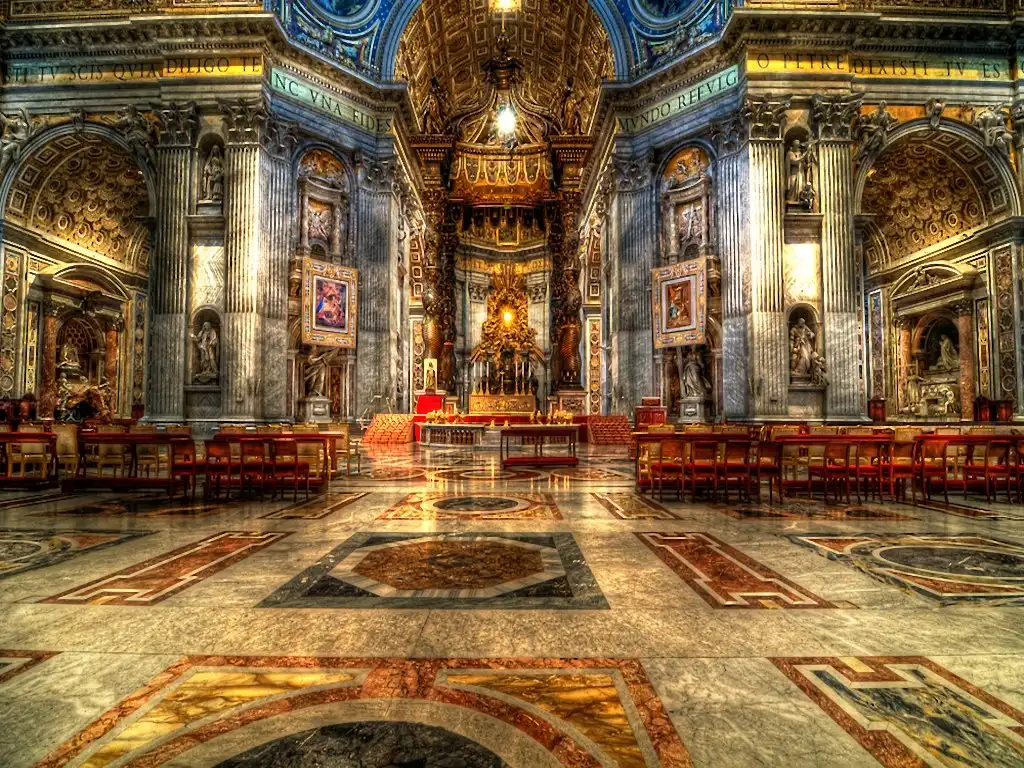 Алтарь собора св. Петра обращён на запад, а не на восток, как большинство [источник?] христианских храмов.