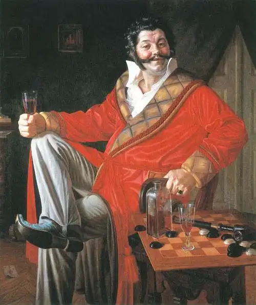 Например, в «Мертвых душах» описывается особое пристрастие Ноздрева к разного рода смешениям в пище и винах (а всякая пища, как и питье, в духовном понимании, так или иначе духоносны и соучаствуют в питании души): повар, распознав нрав Ноздрева, «руководствовался более каким-то вдохновеньем» и смешивал «что попадалось под руку» – «катай-валяй, было бы горячо, а вкус какой-нибудь, верно, выйдет» (5, 72). Сам же хозяин особенно «налегал» на вина и потчевал «портвейном», затем «госотерном, потому что в губернских городах не бывает простого сотерна»; потом – «мадерой», в которую, как было принято у купцов, добавлялся «ром», а порой и «царская водка» – «в надежде, что всё вынесут русские желудки». Наконец, Ноздрев «велел еще принесть какую-то особенную бутылку, которая, по его словам, была бургуньон и шампаньон вместе» (5, 72). Смешение вин знаменательно сопровождается языковым помешательством русской души, которая, соглашаясь на языковую смесь, терпит поражение от западного смесительного магического духа. Ноздрев говорит на уродливо смешанном языке, к примеру, дамские руки, «по словам его, были самой субдительной суперфлю, – слово, вероятно означавшее у него высочайшую точку совершенства» (5, 72). Образ душевного помешательства Ноздрева довершается и другими смесительными подробностями: любимая им шарманка играла какое-то крошево западных мелодий: « мазурка оканчивалась песнею: “Мальбруг в поход поехал”, а “Мальбруг в поход поехал” неожиданно завершался каким-то давно знакомым вальсом» (5, 72). Были у Ноздрева и «турецкие кинжалы, на одном из которых по ошибке было вырезано: “Мастер Савелий Сибиряков”» (5, 72).
