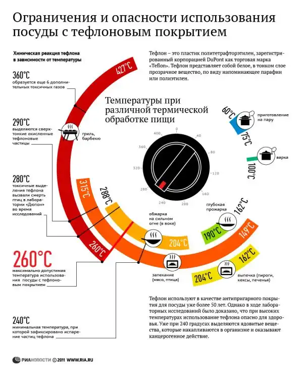 В силу своей биоинертности тефлон полностью безвреден для организма. Даже если полимерный слой поцарапан и мелкие частицы его попали в пищу — нет повода беспокоиться. Они без изменений проходят через желудочно-кишечный тракт и выводятся наружу.