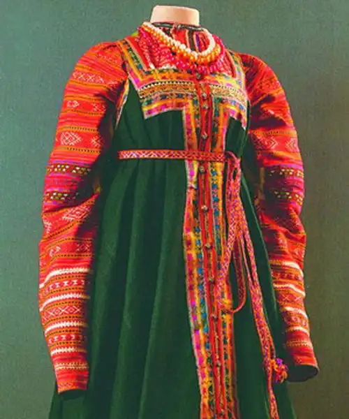 Орнамент на одежде многое мог рассказать о его владельце. Так, например, в Вологодской области, дерево изображалось на рубашках беременных женщин. Курицу вышивали на одежде замужних, белых лебедей — у незамужних девушек. Сарафан синего цвета носили незамужние девушки, готовящиеся к свадьбе или старушки. А вот, например, красный сарафан надевали те, кто только что вышел замуж. Чем больше времени прошло после свадьбы, тем меньше красного цвета женщина использовала в своей одежде. Что значила рогатая лягушка на рисунке передника? Рога — это символ плодовитости, подтверждение того, что эта девушка может родить. А лягушка — это символ роженицы, в состояние которой стремилась попасть каждая уважающая себя девушка того времени. Так что, рогатая лягушка указывала, что перед тобой девушка, желающая первенца.
