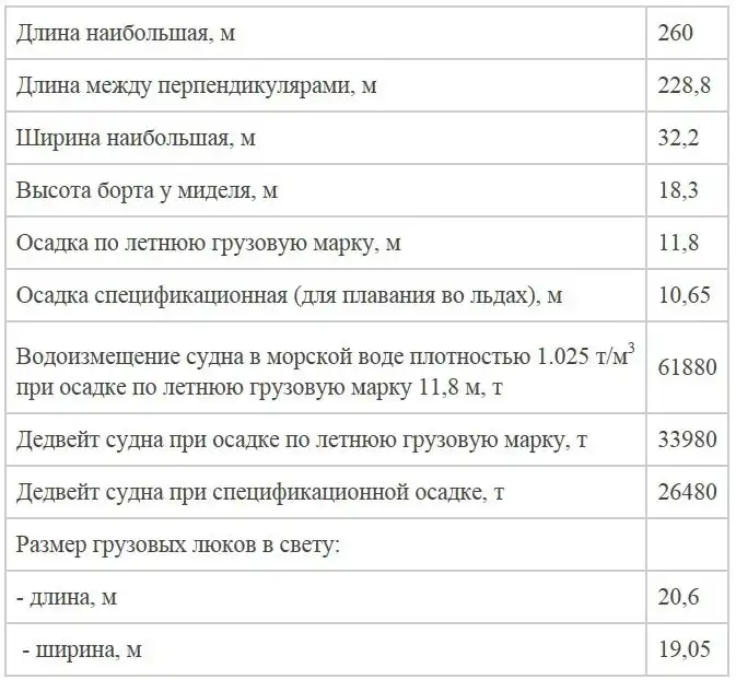 Судно способно самостоятельно идти в сплошных ровных ледяных полях толщиной до 1 метра со скоростью около двух узлов. Корпус разделен 11 поперечными водонепроницаемыми переборками на 12 отсеков, в числе которых 6 грузовых трюмов.