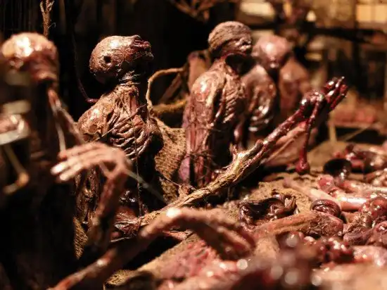 Все круги ада, представленные в диорамах австралийского скульптора, целиком и полностью выполнены из силикона, который по мановению скальпеля превратился в истерзанную плоть, порванные жилы и полусгнившие лица, на которых очень легко прочитать агонию, ужас, и даже, как это ни странно, надежду.