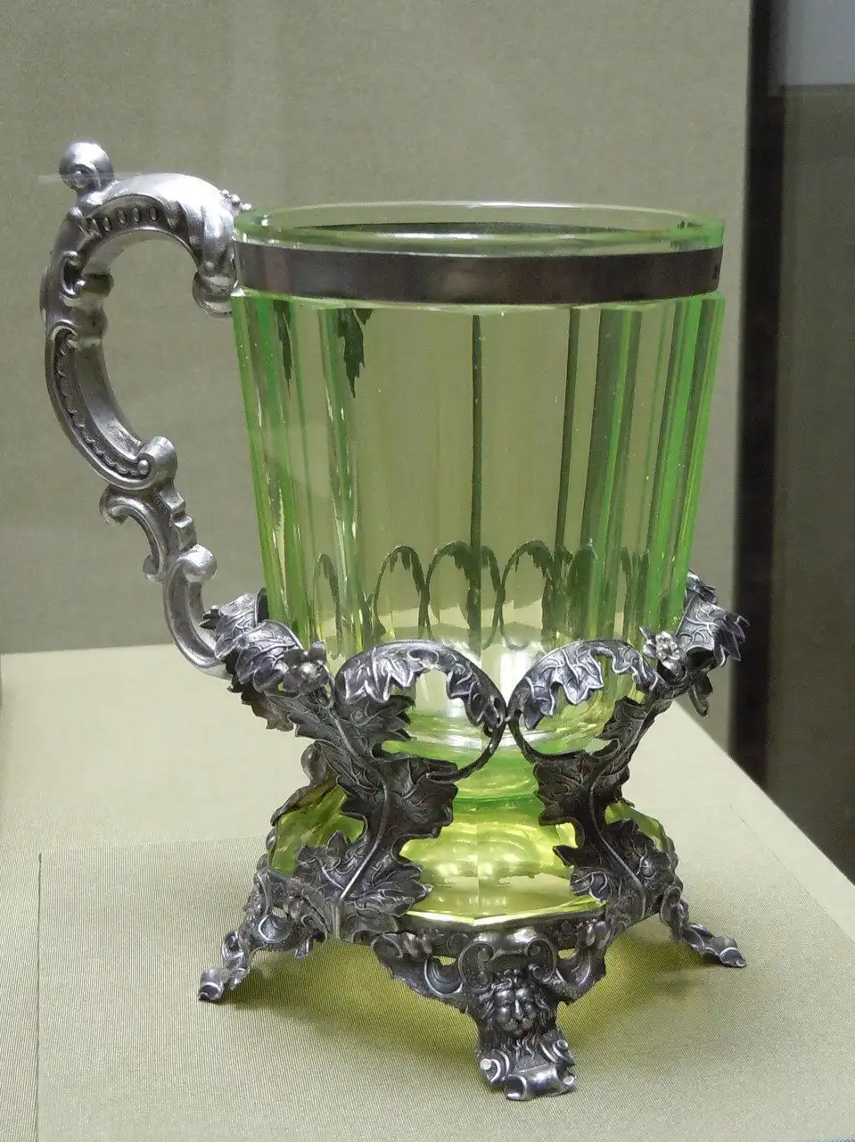В 40-х годах девятнадцатого века производство уранового стекла началось повсеместно , в том числе и в России. Каждый производитель вносил свои изменения в рецептуру стекла. Цвет и оттенки уранового стекла варьировались от горчичного до белого, бирюзового и голубого. Экспериментировали также с прозрачностью стекла. Полупрозрачное стекло называлось вазелиновым, непрозрачное зеленое – хризопразовым или нефритовым.