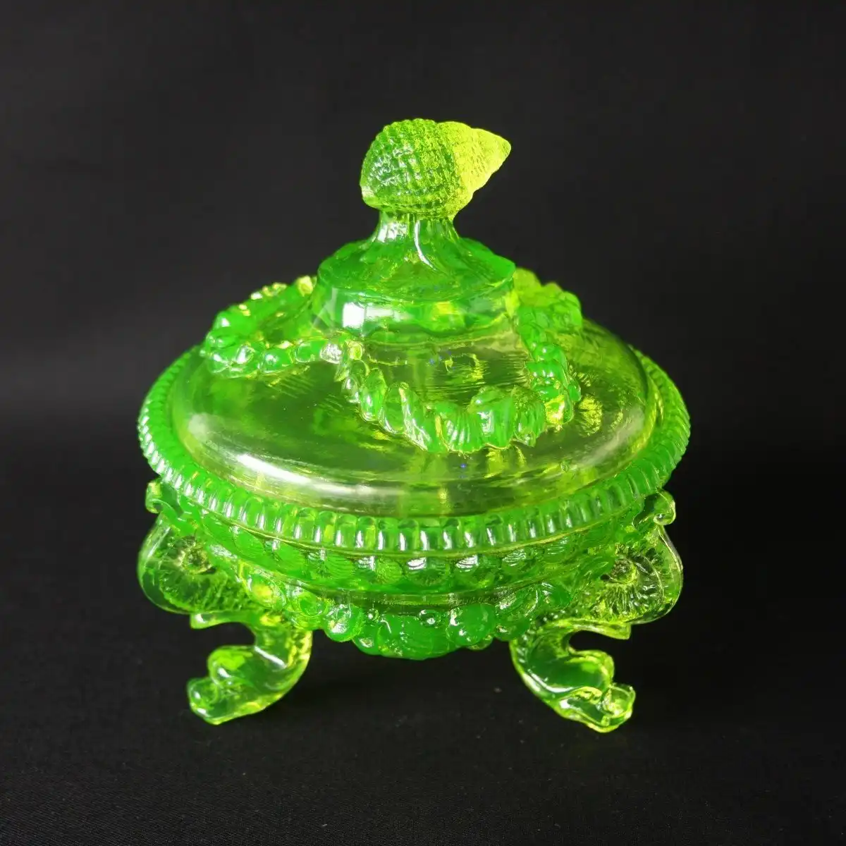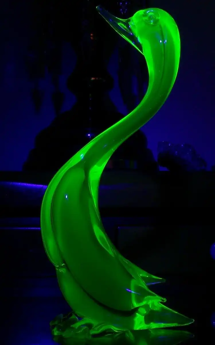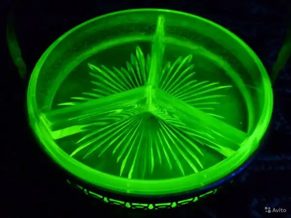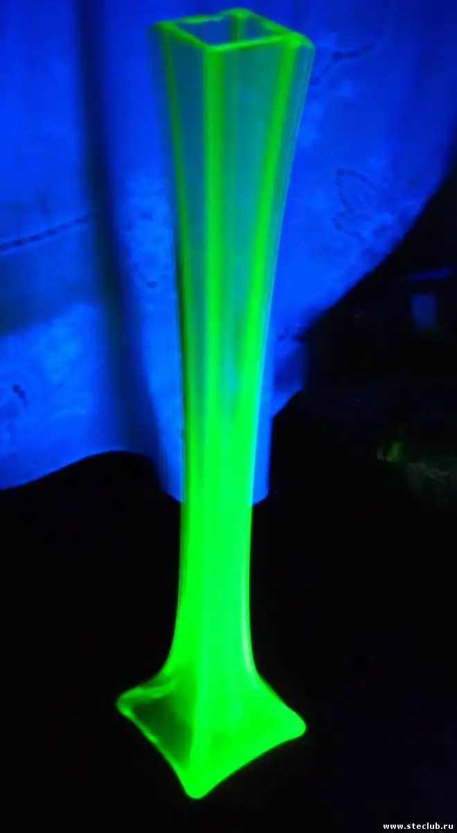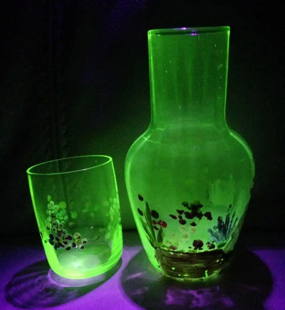 Урановое стекло — это стекло, окрашенное оксидом урана в цвета от прозрачно-желтого до глубокого желто-зеленого, бирюзового и даже голубого. Но не только своим цветом отличается это стекло. Основное его отличие , это то, что урановое стекло интенсивно флюоресцирует — горит в ультрафиолетовых лучах.