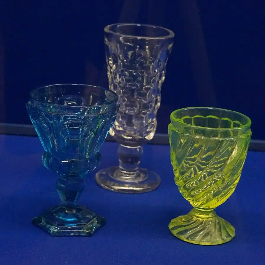 На мануфактуре Риделя из уранового стекла изготавливались традиционные для того времени дутые вазы, бокалы и стаканы, украшенные гравировкой