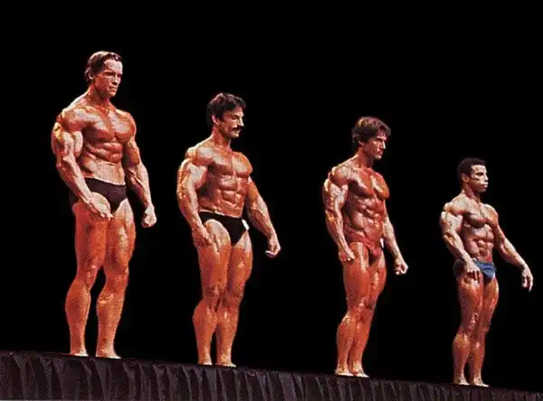Арнольд выделялся среди остальных своим ростом и улыбкой. В то время, как многие из участников, такие как австралиец Роджер Уокер и Майк Ментцер, были чрезвычайно серьезны, Арнольд улыбался и играл на публику. Он возвышался над блистательным Крисом Дикерсоном и подавлял массой прорисованного, но худого Френка Зэйна. При сравнении с другими участниками Мистер Олимпия 1980 Шварценеггер делал шаг вперед и принимал позу. Когда остальные повторяли, он отходил назад. К моменту, когда судья повторял указание, Арнольд уже добивался желаемого эффекта.