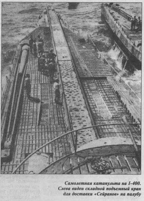 Более заманчивой была идея оснастить подлодку не слабовооруженным и тихоходным разведчиком, а реальным боевым самолетом, превратив субмарину в настоящий подводный авианосец. Но для этой цели обычные подлодки не подходили — требовался корабль с огромным водоизмещением. Единственной страной, сумевшей построить и поставить на вооружение авианосец с перископом, оказалась Япония. К концу второй мировой войны в составе Имперского военно-морского флота появились гигантские субмарины серии «I-400», авиационное вооружение которых состояло из нескольких поплавковых одномоторных бомбардировщиков фирмы «Аичи» — М6А1 «Сейран» («Горный туман»).
