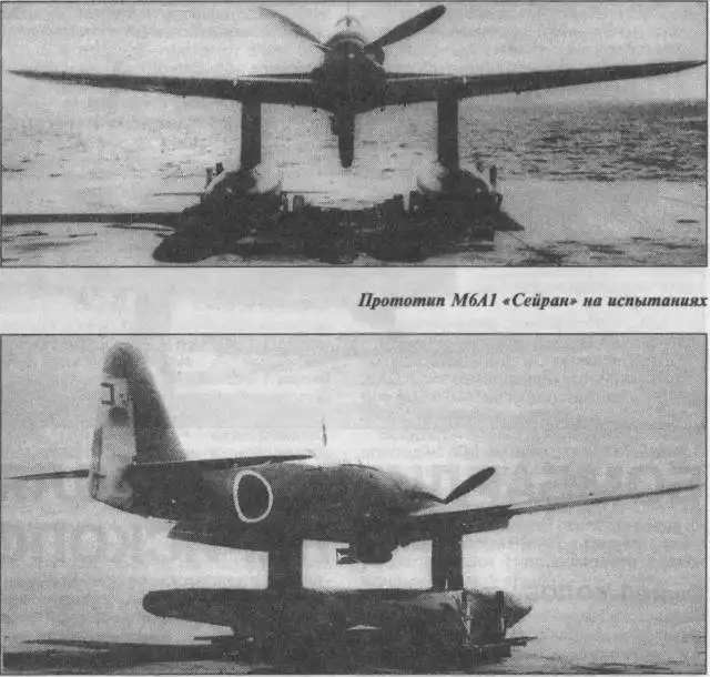 Первый прототип М6А1 был готов в октябре 1943 г. и приступил в ноябре к летным испытаниям, а в феврале следующего года к нему присоединился второй экземпляр «Сейрана». Запланированные для самолета двигатели AEIP «Ацута» 32 еще не были готовы. Обе машины получили AEIA «Ацута» 21 с такой же взлетной мощностью 1400 л.с, но менее высотные. К лету 1944 г. взлетели следующие два поплавковых М6А1 и пара М6А1 -К на колесах (на них уже стояли моторы «Ацута» 32). Максимальную скорость «Сейран» развивал, естественно, в полете без поплавков, а сними эта цифра падала до 474 км/ч на высоте 5200 метров. Никаких особых неожиданностей при испытании нового бомбардировщика не обнаружили, и на заводе в Нагое стали готовить оснастку для серийного выпуска.