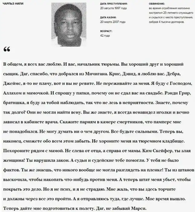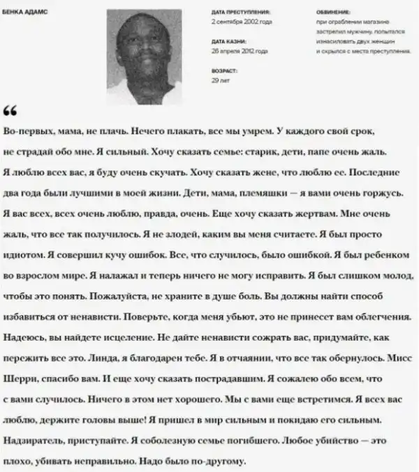 Техасские осужденные-смертники и их последние слова