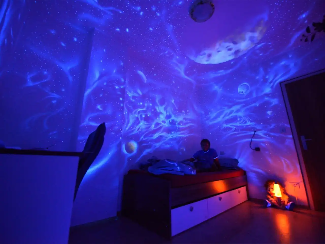 Люминесцентные настенные рисунки создают ощущение некой магии и волшебства. Вот перед вами комната с совершенно чистыми стенами, но стоит выключить свет, и вы попадаете в совершенно иной мир, будто вошли в какой-то портал. Добавьте ультрафиолетовый свет и вы уже в третьем мире!