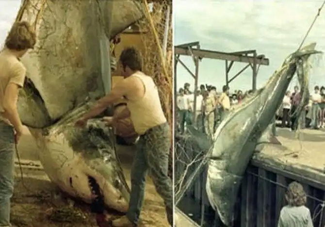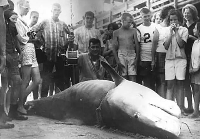 Чтобы поймать большую белую акулу в 1964 году, в числе прочего Фрэнку Мандусу потребовалось пять гарпунов. После 5 часов противостояния акула все же сдалась. Вес добычи составил 2041 кг.