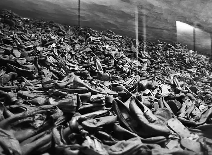 Когда 27 января 1945 года советские солдаты заняли Освенцим, они нашли там около 7,5 тыс. узников, которых не успели увезти, а в частично уцелевших бараках-складах — 1 185 345 мужских и дамских костюмов, 43 255 пар мужской и женской обуви, 13 694 ковра, огромное количество зубных щёток и кисточек для бритья, а также другие мелкие предметы домашнего обихода.