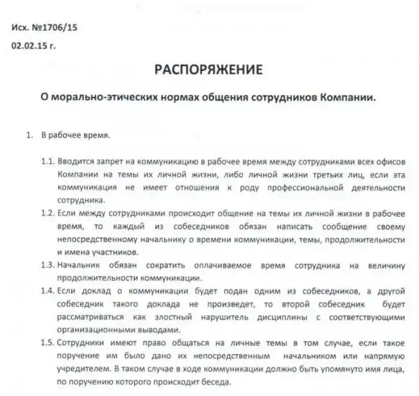 Немало компаний постоянно удивляют своих сотрудников и многих других людей несуразными приказами, указаниями и распоряжениями. Одному из таких распоряжений, выдуманных маразматичным руководством одной компании, мы посвятили данный пост.
