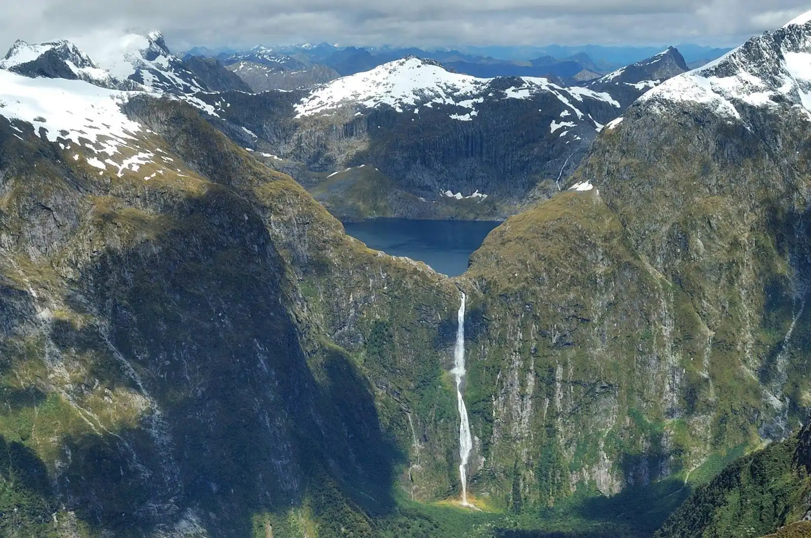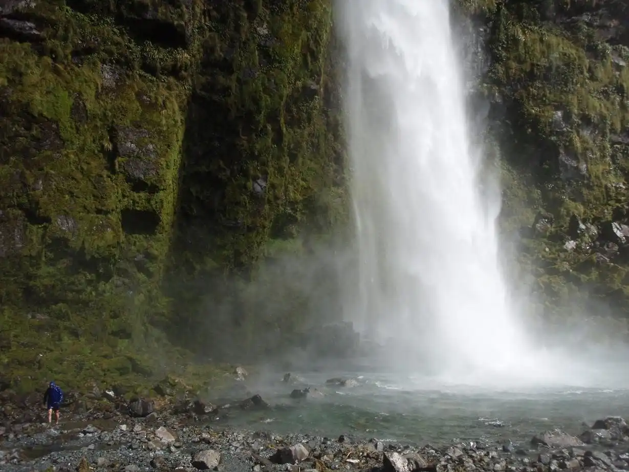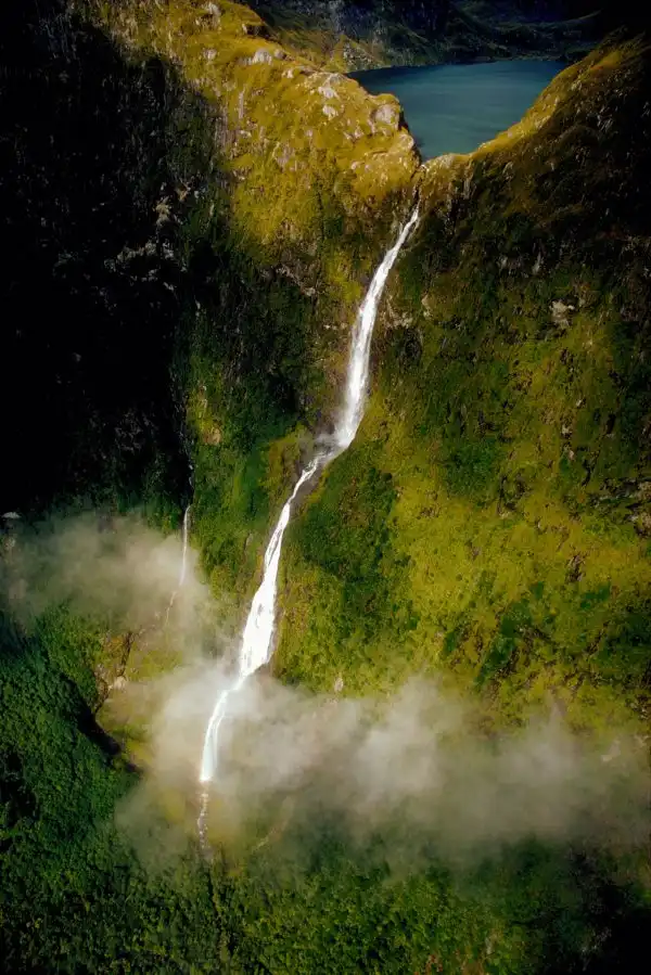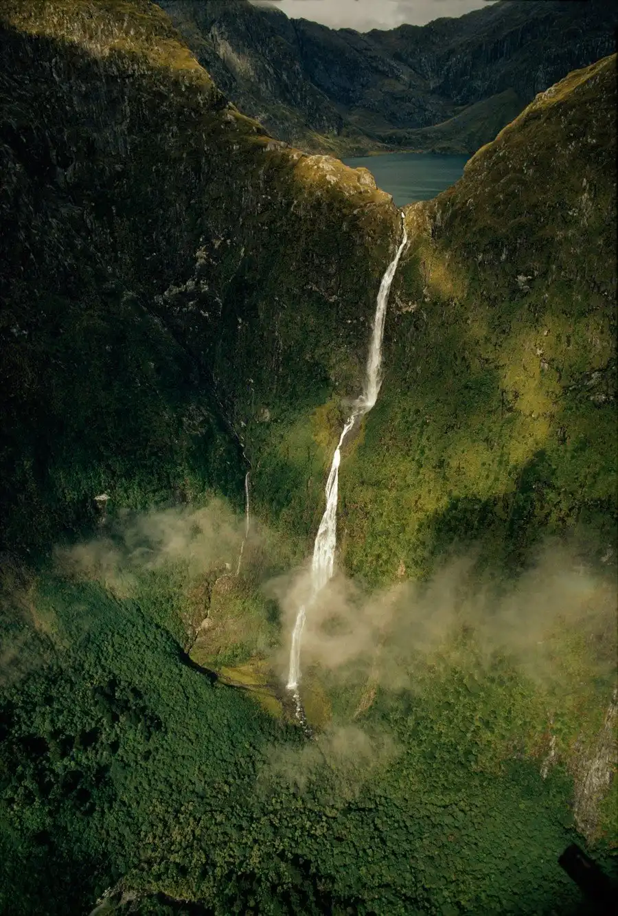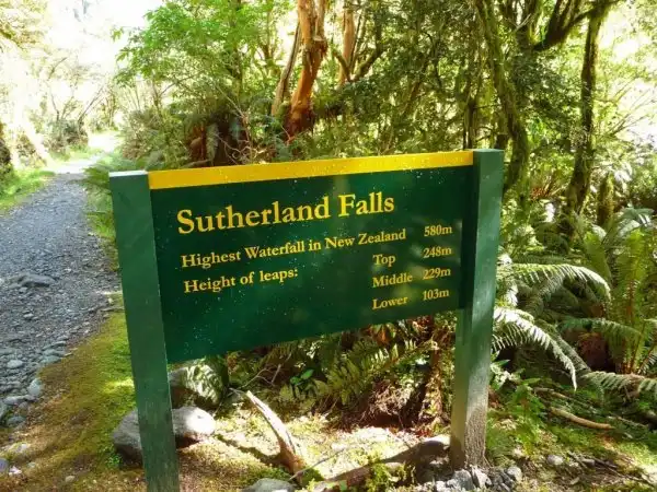 На одном из островов Новой Зеландии в национальном природном парке Фьордленд находится один из самых красивых и высоких водопадов мира — Сазерленд. Еще задолго до того, как турист сможет увидеть водопад Сазерленд, он услышат оглушительный рев — это голос падающей с 580-метровой высоты воды.
