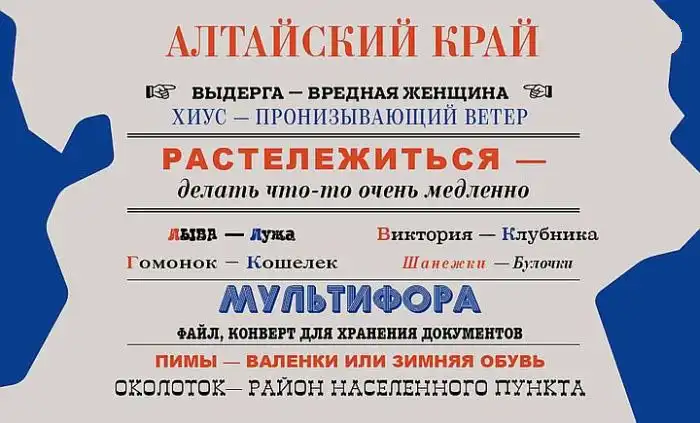 В каждом регионе нашей необъятной страны есть различные слова, которые приводят в ступор многих приезжих людей. Чтобы не быть в числе этих озадаченных путешественников, предлагаем вам ознакомиться с небольшим словариком, который мы подготовили для тех, кто намерен посетить различные регионы России и просто для любознательных людей.