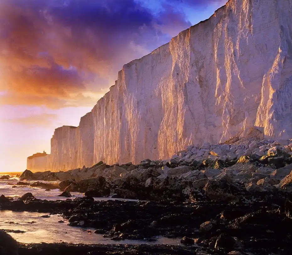 Эта гигантская "глыба" известняка сформировалась около 65-1000 млн. лет назад, когда область была под водой, поднялась на поверхность в кайнозойскую эру. По окончании ледникового периода уровень моря поднялся, сформировав Ла-Манш и живописные скалы вдоль побережья Сассекса.