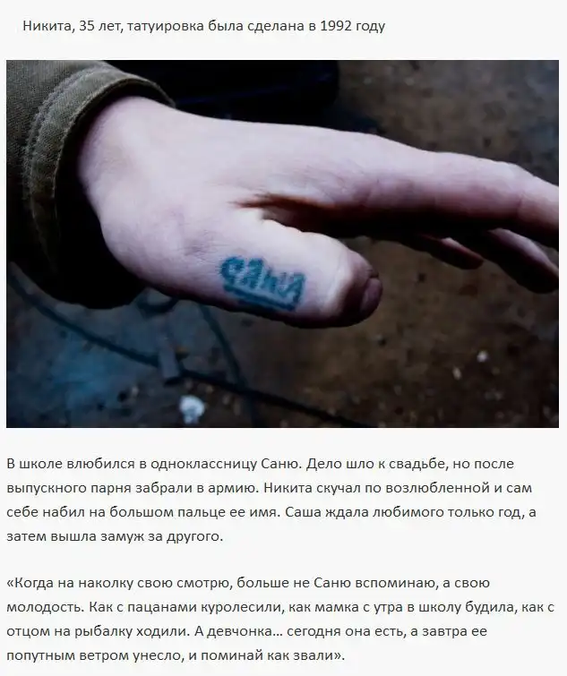 Женские имена, набитые на руках мужчин нашей страны, не такая уж и большая редкость. Одни считают, что набили татуировки от сильного чувства, другие говорят, что сделали это под влиянием алкоголя.