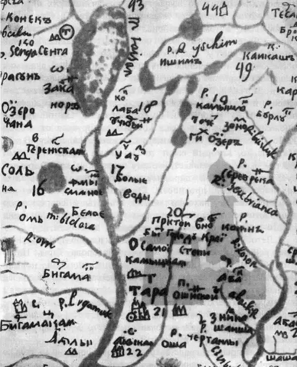 ЧЕРТЕЖНАЯ КНИГА СИБИРИ (Ремезов С.У.) начало XVIII в.н.э., стр 21