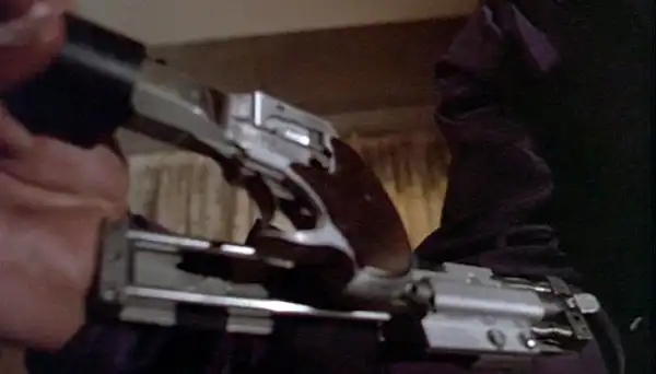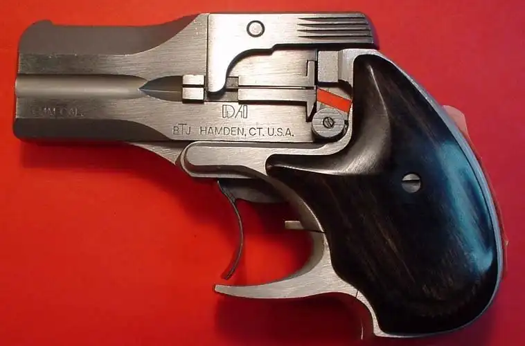 На самом деле - это Дерринжер , 38-го калибра BTJ DA38 O/U , переделанный Тимом под 12-й калибр ( в статье журнала "Petersen's Handguns" , от июля 1988-го , о нём тоже рассказывается ) :