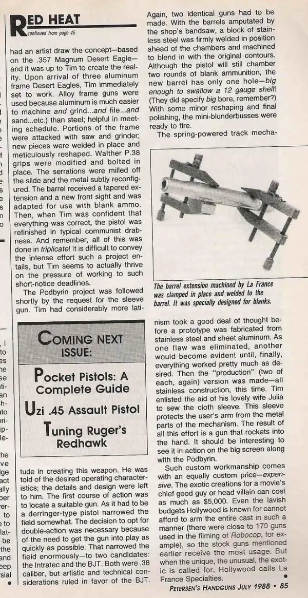 Статья с подробностями о создании девайса ( и ещё одного интересного пистолета игравшего в "Красной Жаре" ) в "Petersen: