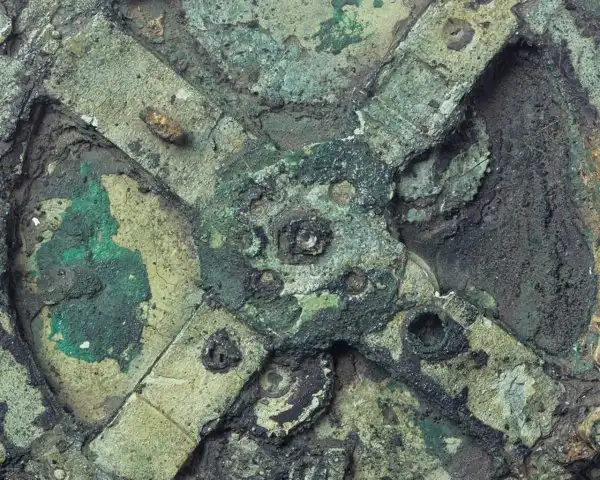Все сохранившиеся металлические части Антикитерского механизма изготовлены из листовой бронзы толщиной 1-2 миллиметра. Многие фрагменты практически полностью преобразовались в продукты коррозии, однако во многих местах все еще можно различить изящные детали механизма.