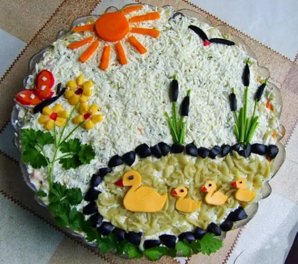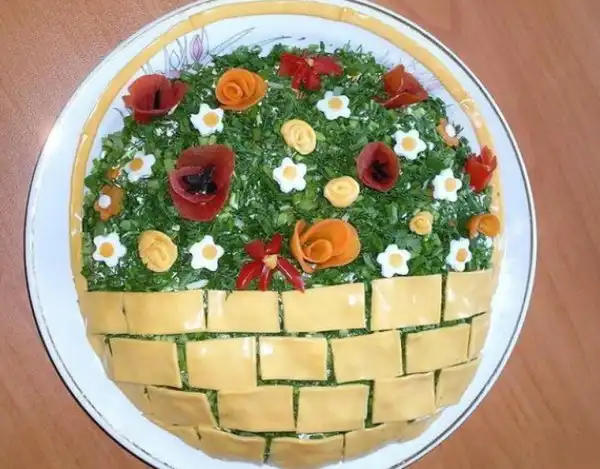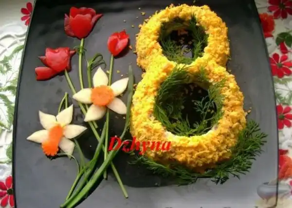 Идеи украшения салатов к 8 марта