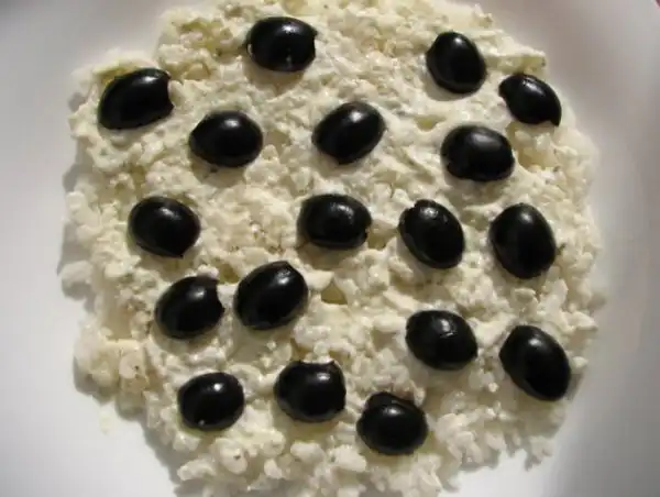 Сверху выкладываем маслины.