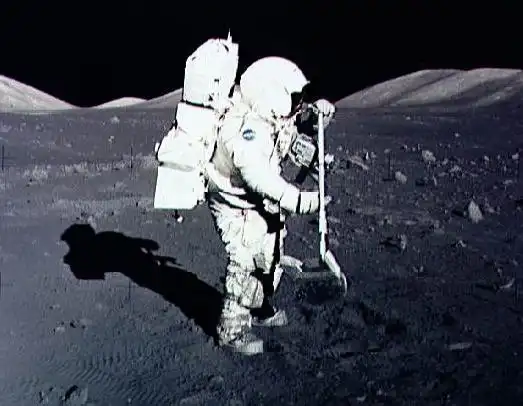 Астронавт Гаррисон Шмитт собирает лунный грунт (архив НАСА)