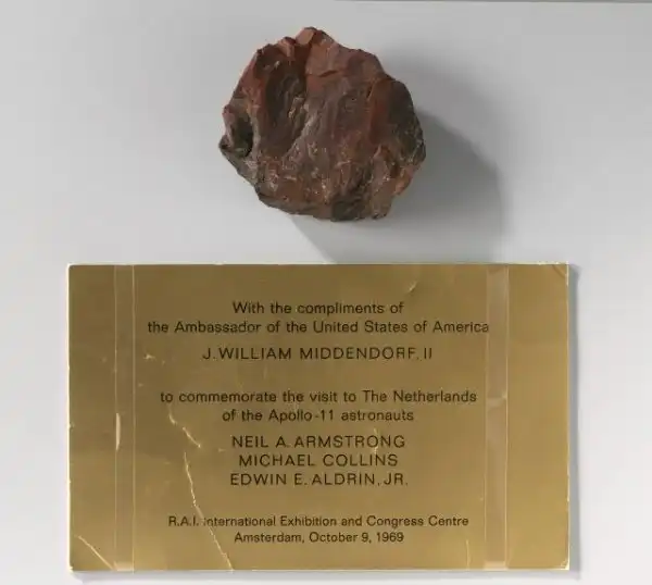 А вот тут еще в 2009 году начали вылазить такие новости. Как сообщает Associated Press, голландские специалисты провели анализ «лунного камня» — предмета, официально, через Госдепартамент, подаренного премьер-министру Нидерландов Виллему Дризу тогдашним послом США в Нидерландах Вильямом Миддендорфом во время визита»доброй воли» в страну астронавтов Нила Армстронга, Майкла Коллинза и Эдвина Олдрина после завершения ими миссии «Аполлона-11″ в 1969 году.