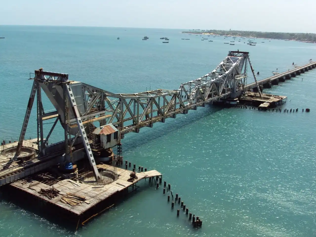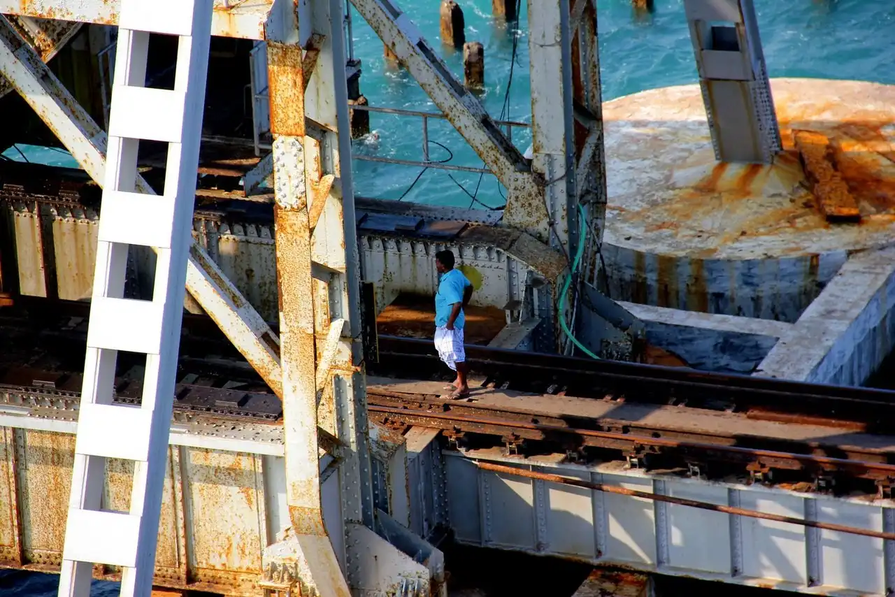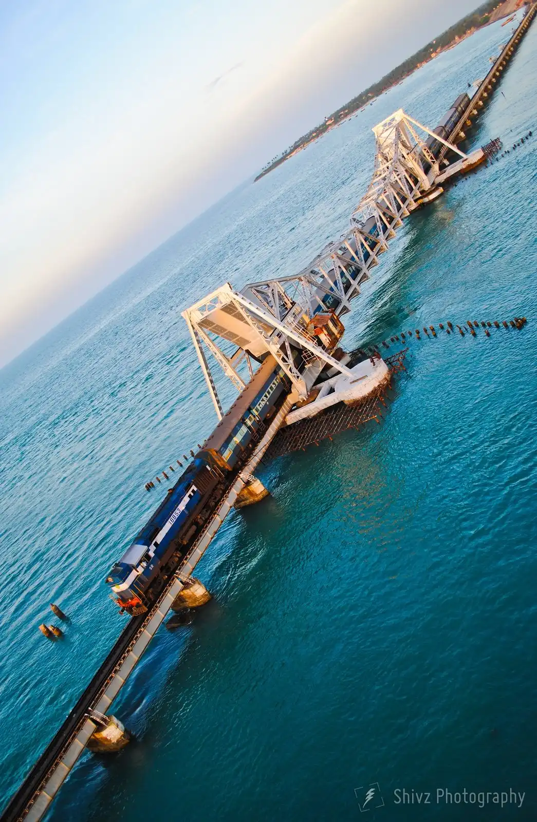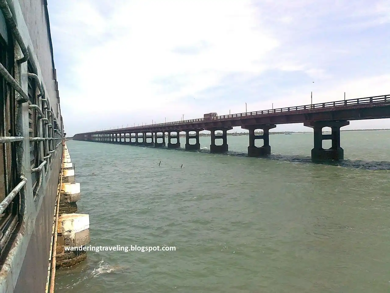 Индийцы дали мосту имя Индиры Ганди, но туристы предпочитают наименование, доставшееся от острова. Мост имеет разводную секцию, которая состоит из двух подъемных арок и служит для пропуска морских судов. Изначально ширина железнодорожной колеи составляла один метр, но в 2007 году индийские транспортники завершили ее модернизацию, и теперь мост может пропускать и стандартные, «широкие» вагоны. Пейзаж, который открывается с моста перед пассажирами проходящих поездов, просто захватывает дух – безбрежный морской горизонт и живописные острова в некотором отдалении.