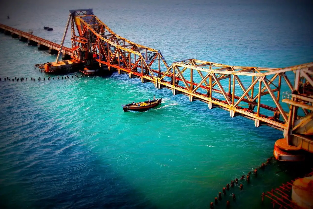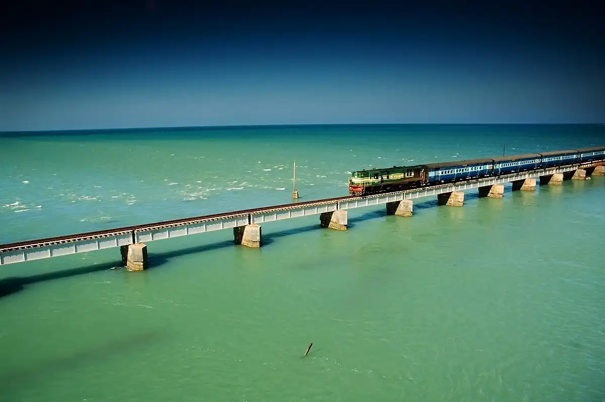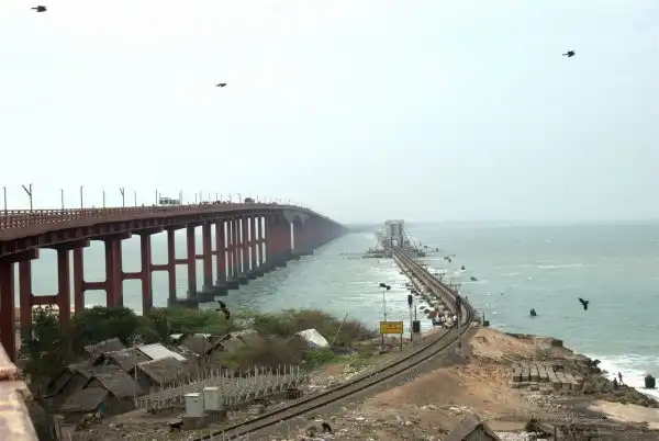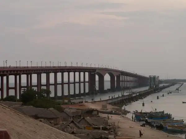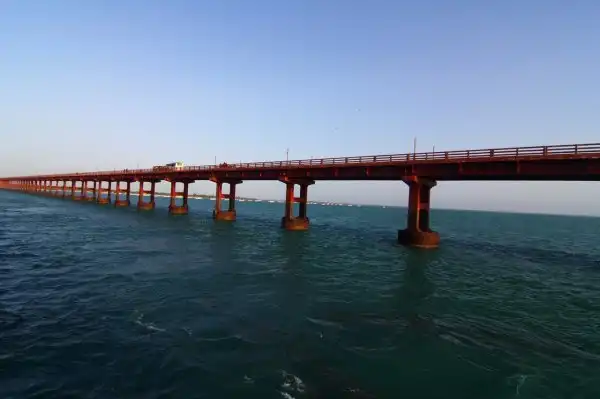 Город Рамесварам (Rameswaram) на острове Памбан соединен с материком мостом протяженностью в 2 км 300 м, по которому совершает захватывающую финишную прямую через пролив Палк поезд, на котором путешественники прибывают на остров из индийского города Ченнаи (Chennai). Рамесварам – это священный город для индусов, весьма популярный среди паломников и туристов. Мост Памбан стал первым в Индии мостом, возведенным над морской поверхностью, и занимает второе место по протяженности.