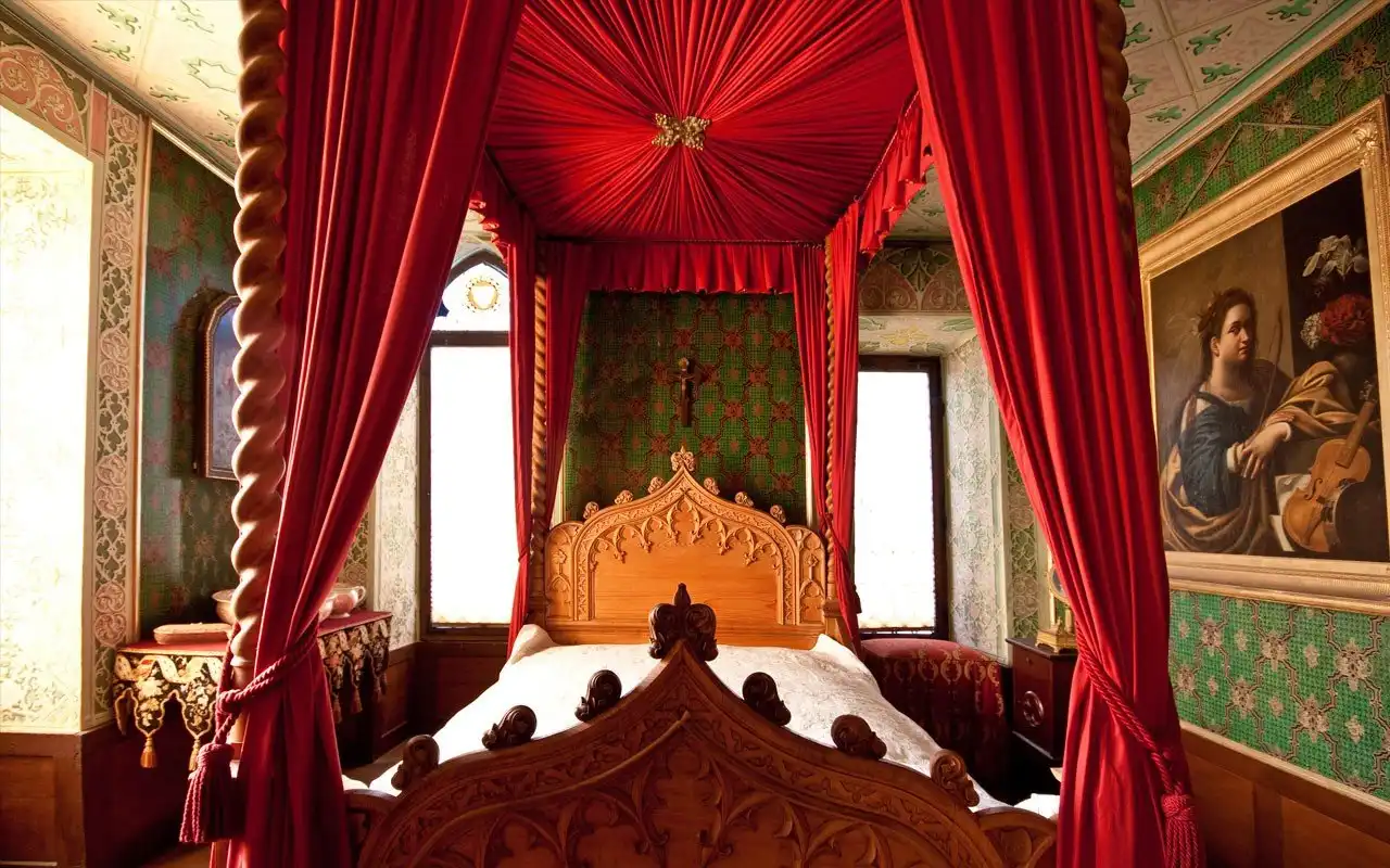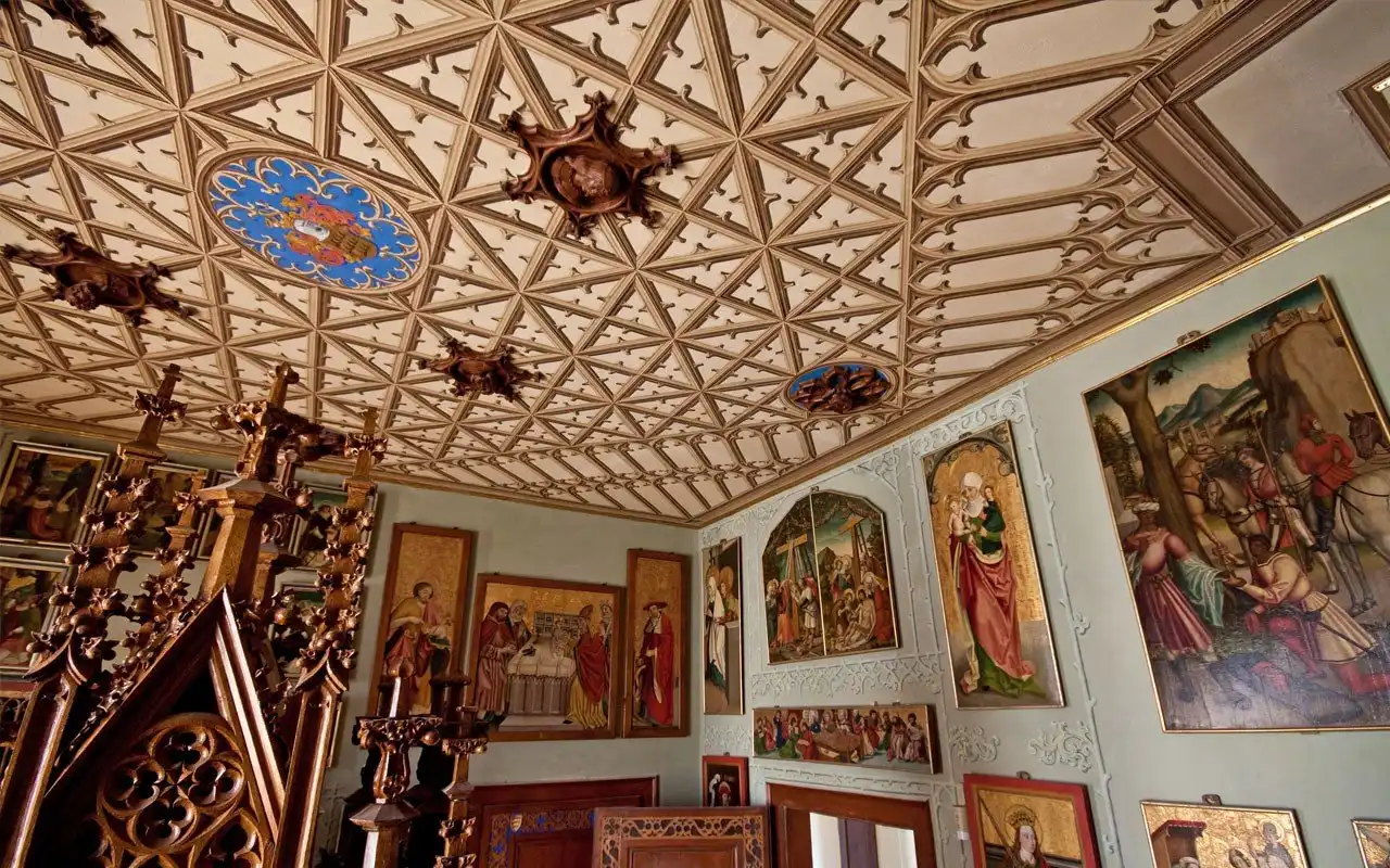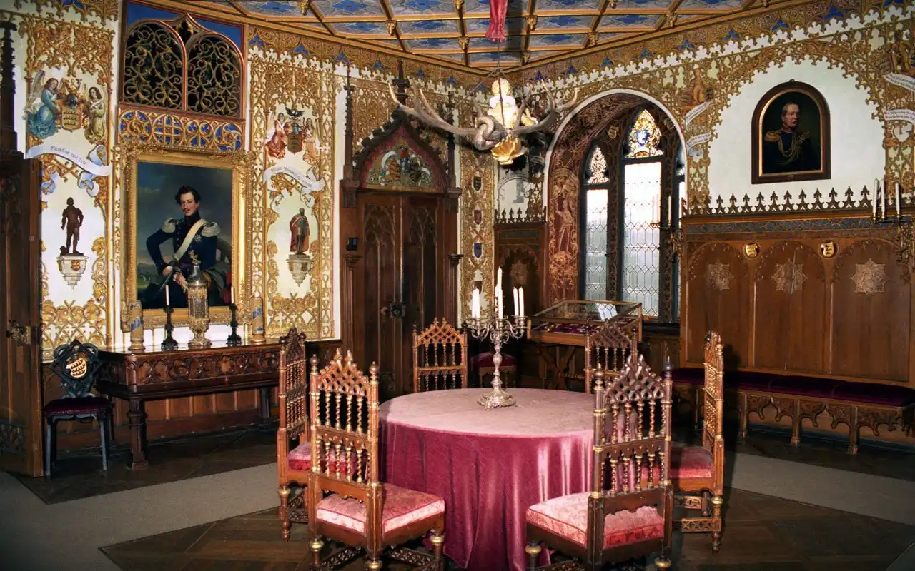 Внутреннее оформление замка, выполненное Гейделоффом, включило в себя лишь немногие детали интерьера старой крепости, например, готический алтарь и средневековые окна, поэтому сейчас замок можно увидеть таким, каким он был задуман в XIX в. В королевских покоях на верхнем этаже находится галерея портретов предков, а оружейная может служить праздничной залой.