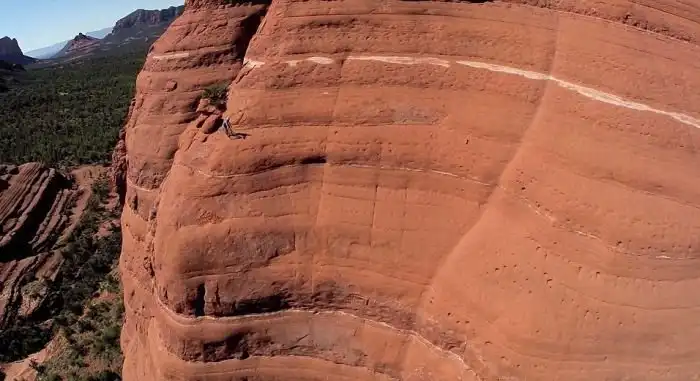 Польский экстремал Михал Коллбек совершил опасный трюк, проехав на горном велосипеде по выступу Красных скал Седоны в Аризоне, США. Почти отвесная скала имеет несколько выступов и так называемую «белую линию», по которой и прокатился 30-летний мужчина. На видео его поездку снял дрон. Как заявил сам велосипедист, на данный трюк его побудили 15-летний опыт и уверенность в собственных силах.