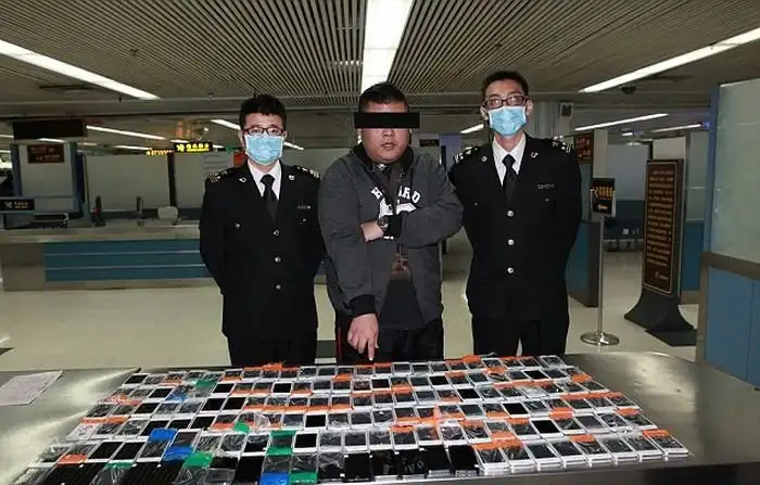 В Китае задержан контрабандист, пытавшийся провезти 146 смартфонов, примотанных к своему телу