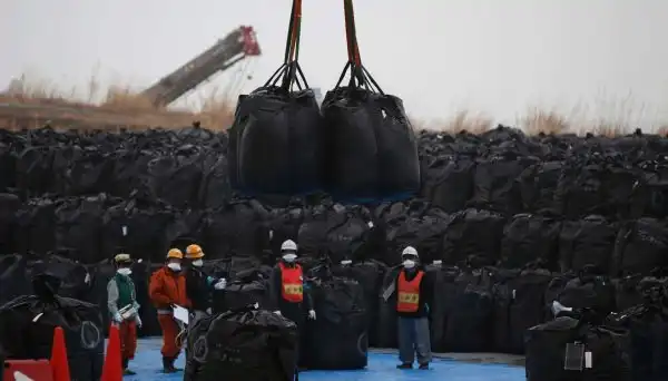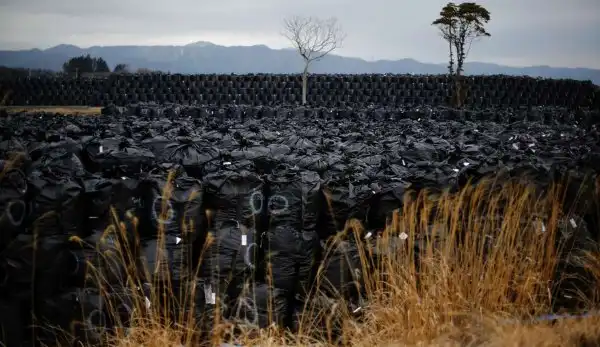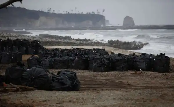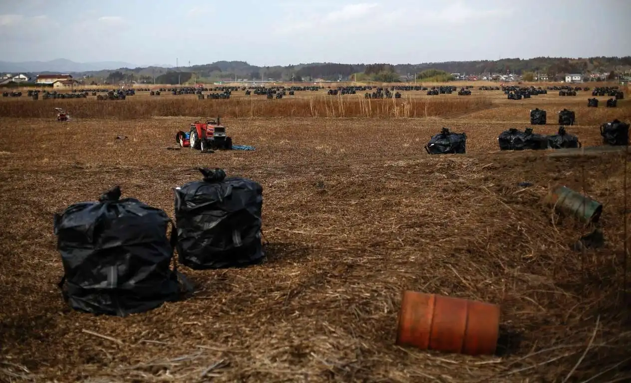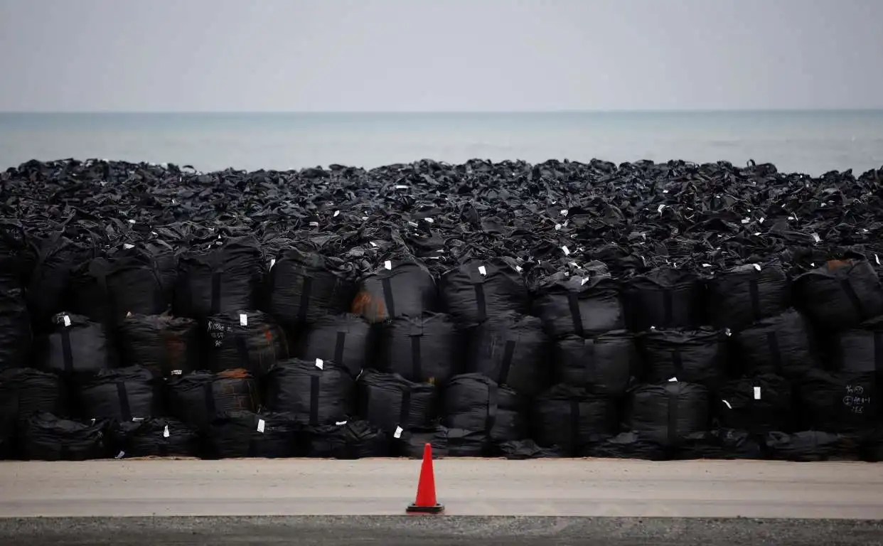 Черные полиэтиленовые мешки с радиоактивными отходами бросили на берегу моря неподалеку от Фукусимы. Горы таких мешков растут изо дня в день.