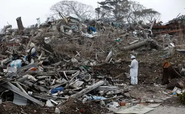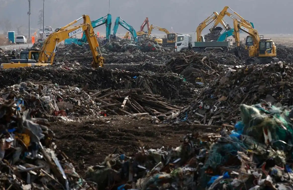 В ход идет тяжелая техника, чтобы расчистить завалы после землетрясения и вывезти радиоактивные отходы с разрушенных территорий.