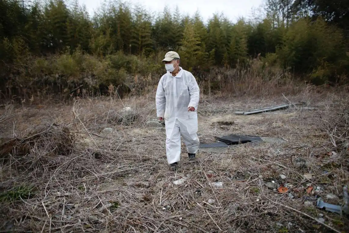 Норио Кимура, 49-летний мужчина, вся семья которого погибла во время цунами. Здесь стоял его дом до того, как его просто смыло водой. Поселок Окума, в котором жил Норио с семьей, расположен недалеко от атомной электростанции в Фукусиме.