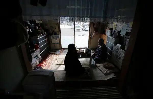 Так выглядит временное жилье изнутри. Томоко Хошина и ее муж Акира из Окумы вынуждены пока жить здесь.