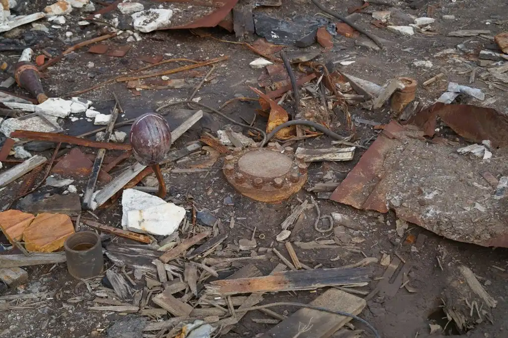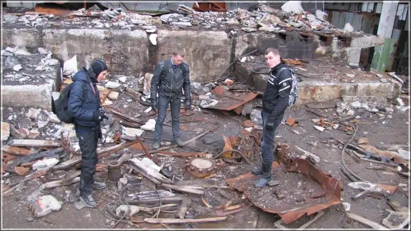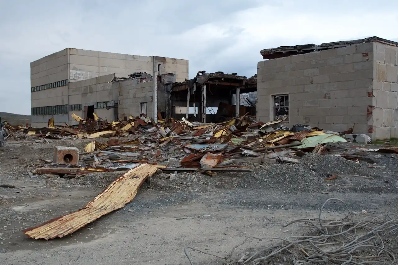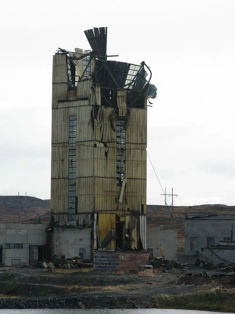 Главный 12-ти этажный корпус, где размещалась бурильная установка разрушен и валяется по всей округи.