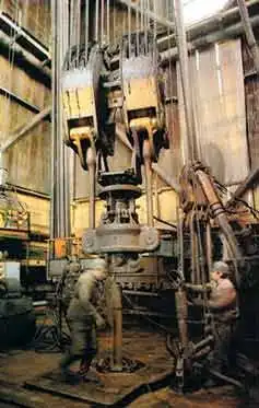 Масса колонны, погруженной в скважину с буровым раствором, около 200 тонн. Это при том, что использовались специально разработанные трубы из легких сплавов. Если колонну сделать из обычных стальных труб, она разорвется от собственного веса.