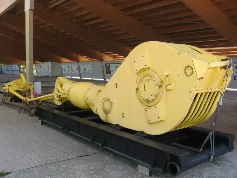Потом был годовой перерыв, связанный со строительством новой вышки и монтажом специально разработанной буровой установки — «Уралмаш-15000″. Именно с ее помощью велось все дальнейшее сверхглубокое бурение. В новой установке — более мощное автоматизированное оборудование. Использовалось турбинное бурение — это когда вращается не вся колонна, а только буровая головка. Через колонну под давлением подавался буровой раствор, вращающий стоящую внизу многоступенчатую турбину. Общая ее длина — 46 м. Завершается турбина буровой головкой диаметром 214 мм (ее часто называют коронкой), имеющей кольцевую форму, поэтому в середине остается неразбуренный столбик породы — керн диаметром 60 мм. Через все секции турбины проходит труба — керноприемник, где собираются столбики добытой породы. Измельченная порода вместе с буровым раствором выносится по скважине на поверхность.