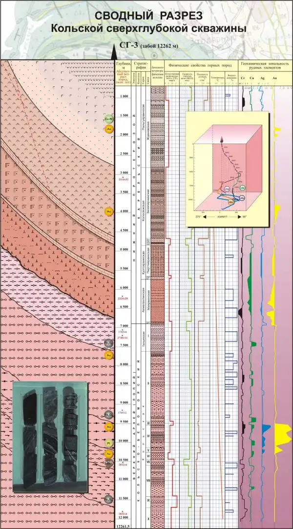 Как было отмечено выше, геологический прогноз разреза скважины не оправдался. Картина, которая ожидалась на протяжении первых 5 км, в скважине растянулась на 7 км, а дальше появились совсем неожиданные породы. Прогнозируемых на глубине 7 км базальтов не нашли, даже когда опустились до 12 км.