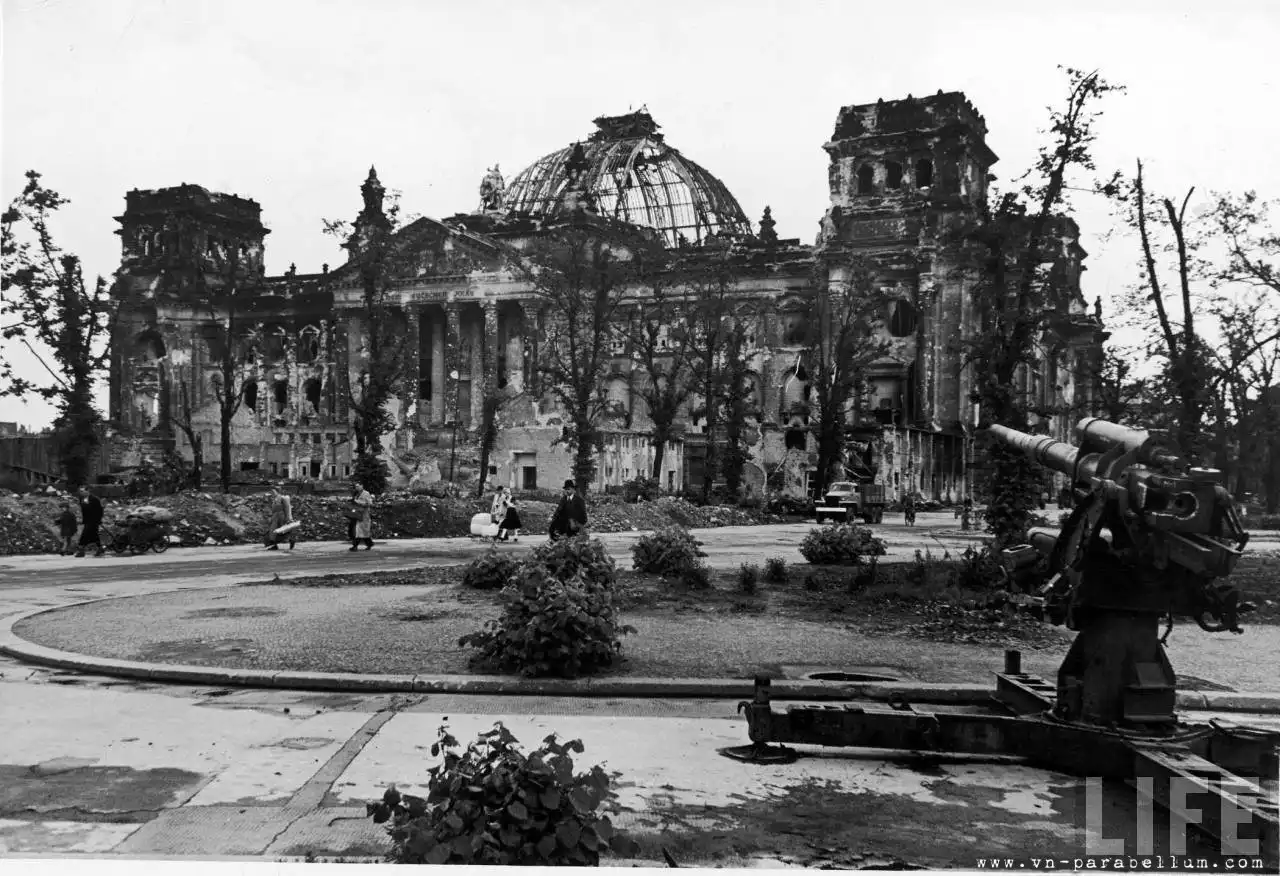После капитуляции Германии и краха III рейха Рейхстаг еще долгое время оставался в руинах. Власти никак не могли решить вопрос, стоит его восстанавливать или гораздо целесообразнее снести. Поскольку купол был поврежден еще во время пожара, а воздушными бомбардировками практически разрушен, в 1954 году то, что от него осталось, было взорвано. И только в 1956-м его было решено восстановить.