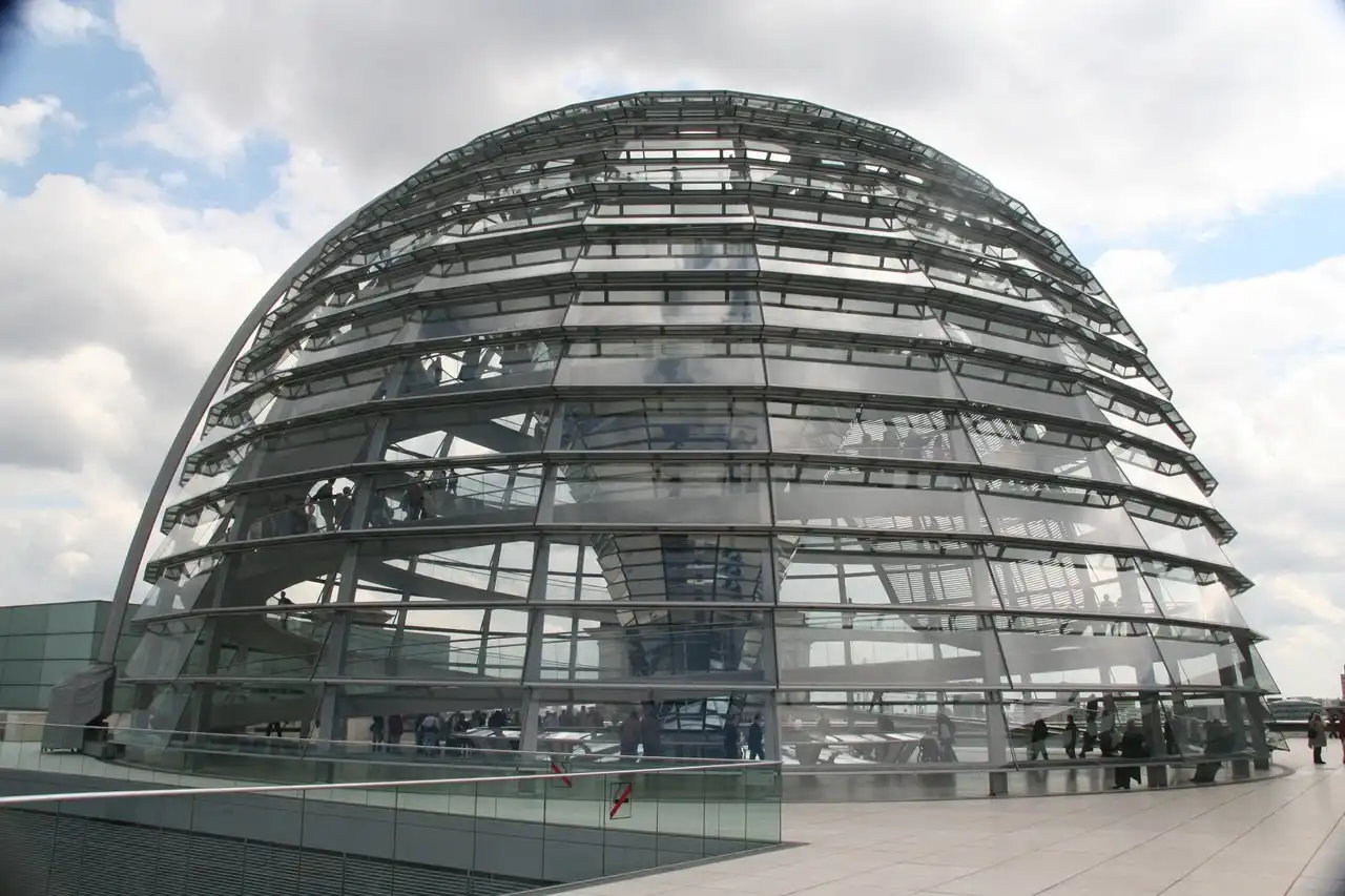 Купол Рейхстага имеет диаметр 40 м, его высота составляет 23,5 м, вес 1 200 тонн, из них — стальных конструкций 700 тонн. Обзорная площадка, оборудованная на куполе, располагается на высоте 40,7 м. Находясь на ней, можно видеть и круговую панораму Берлина, и все происходящее в зале заседаний.