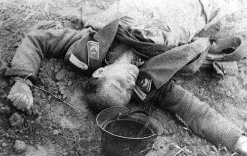 Инстинктивно я бросился вниз, одновременно нажав на гашетку автомата. Я не знаю, кто его убил, но когда я поднял голову - офицер, перевернувшись, опрокинулся в снег, и к нему бежали два наших пехотинца.