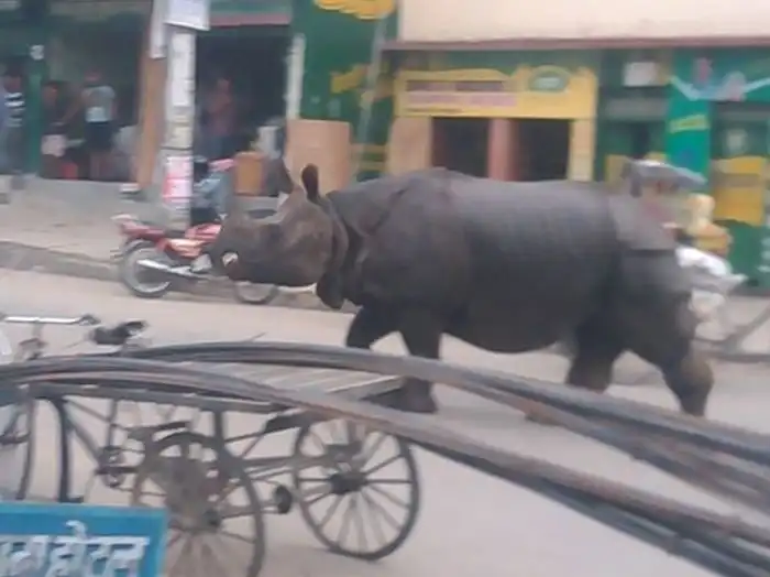В Непале в городе Хетауда разъяренный взрослый носорог убил одного человека и ранил еще шестерых. Инцидент произошел вчера днем. Животное сбежало с заповедника, расположенного в 20 км от города. В городе носорог вел себя довольно спокойно, он ходил по улицам, зашел на рынок и вокзал. Когда люди захотели прогнать животное, оно испугалось громких криков и автомобильных сигналов. Носорог пустился в бегство и начал атаковать людей. Под его ногами погибла 61-летняя местная жительница. У здания городской больницы крупное млекопитающее остановилось и немного успокоилось. Чтобы вывести животное из города были привлечены ветеринары и специалисты со слонами.